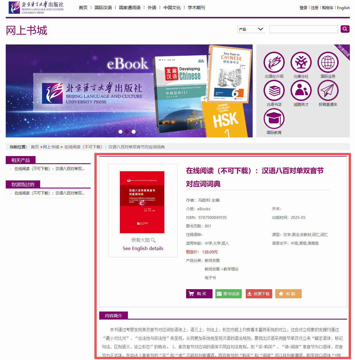《汉语八百对单双音节对应词词典》电子版现已上线北京语言大学出版社官网,进入网上书城国际汉语分区,即可购买。