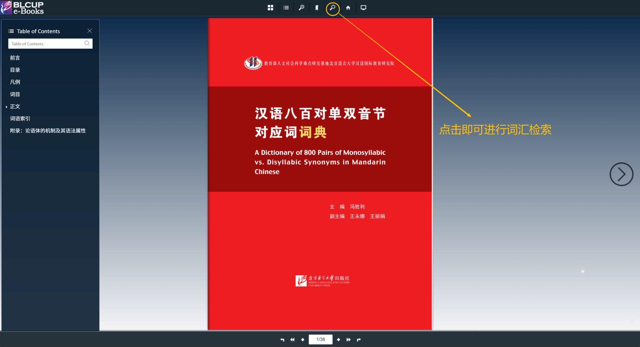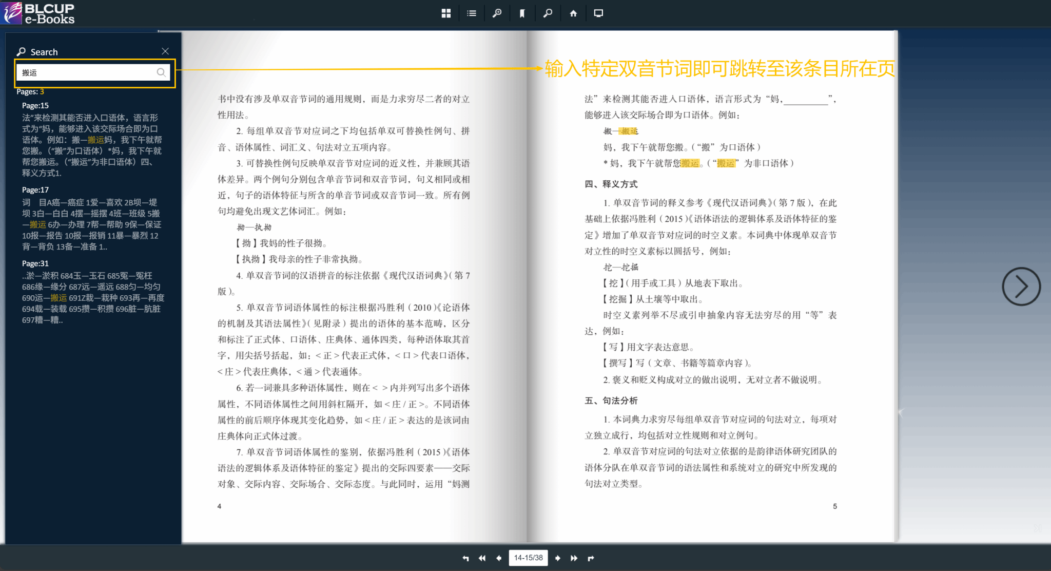 2.电子版图书支持词汇检索,输入特定双音节词即可跳转查看该条目内容: